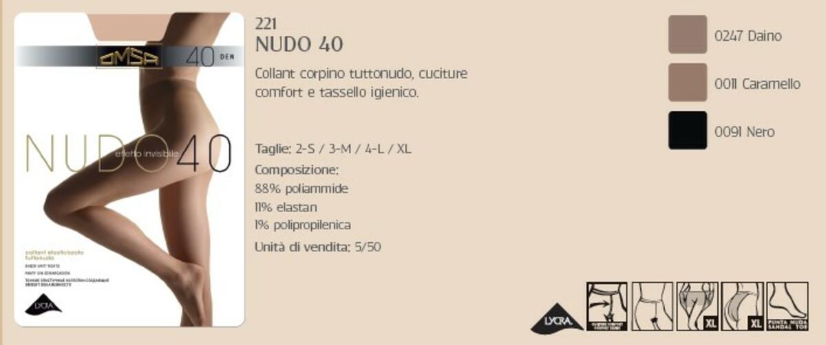 COLLANT DONNA LYCRA 40 DENARI TUTTONUDO PUNTA INVISIBILE