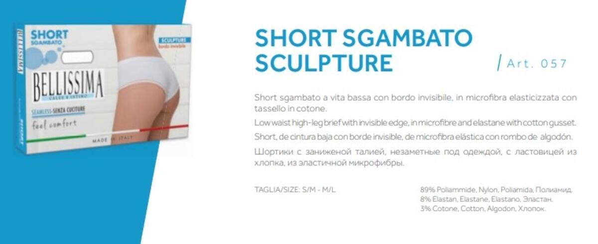 SLIP DONNA SHORT SGAMBATO A VITA BASSA CON BORDO INVISIBILE, IN MICROFIBRA ELASTICIZZATA CON TASSELLO IN COTONE.