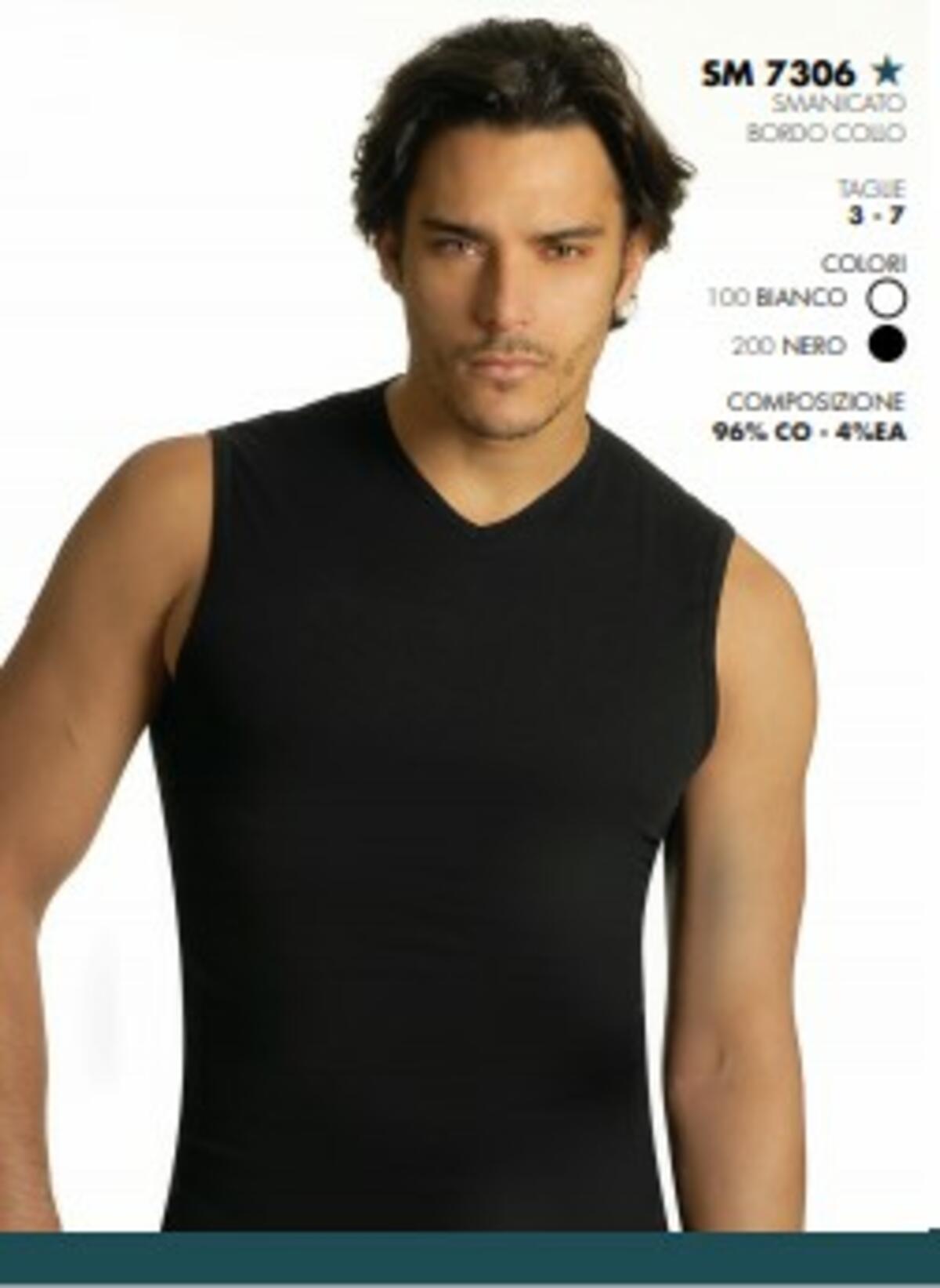 CANOTTA INTIMA UOMO SMANICATO BORDO COLLO IN JERSEY COTONE ELASTICIZZATO