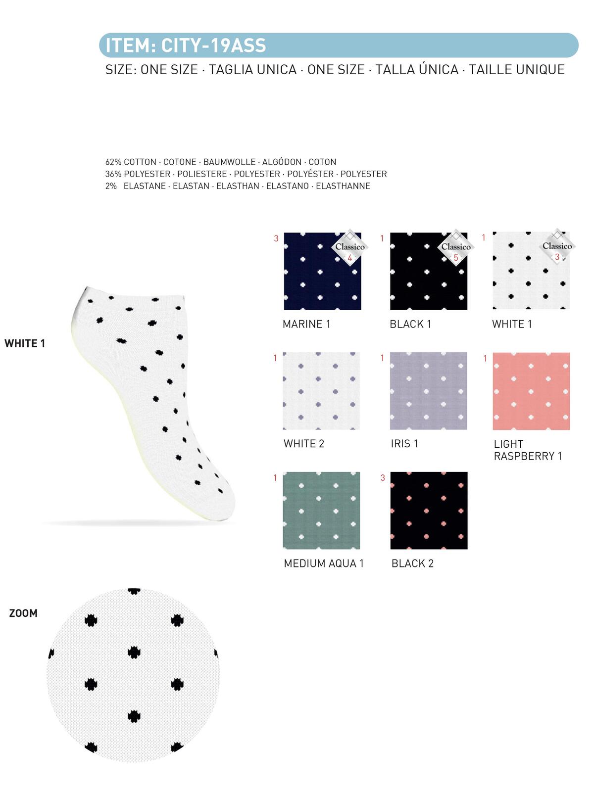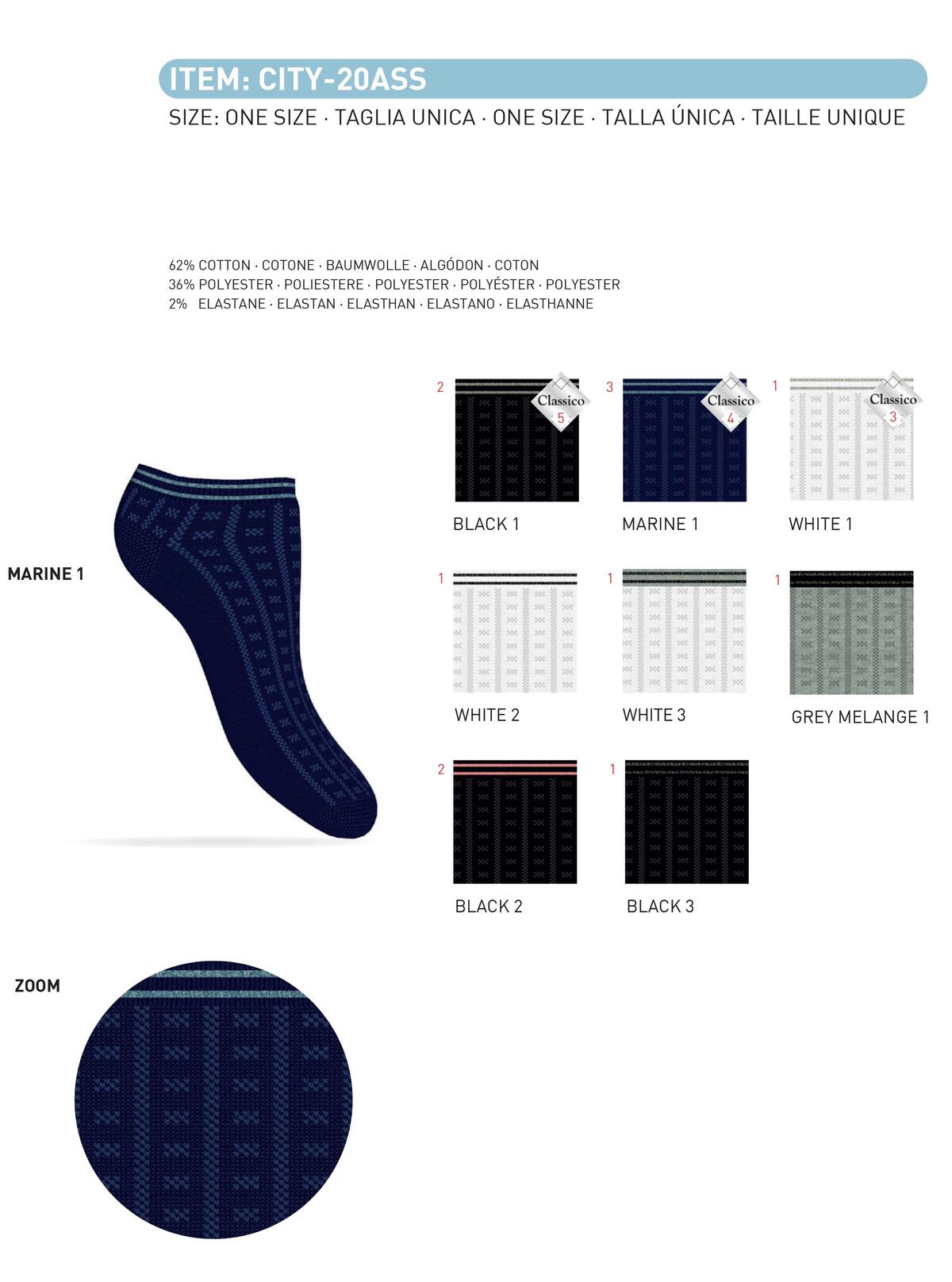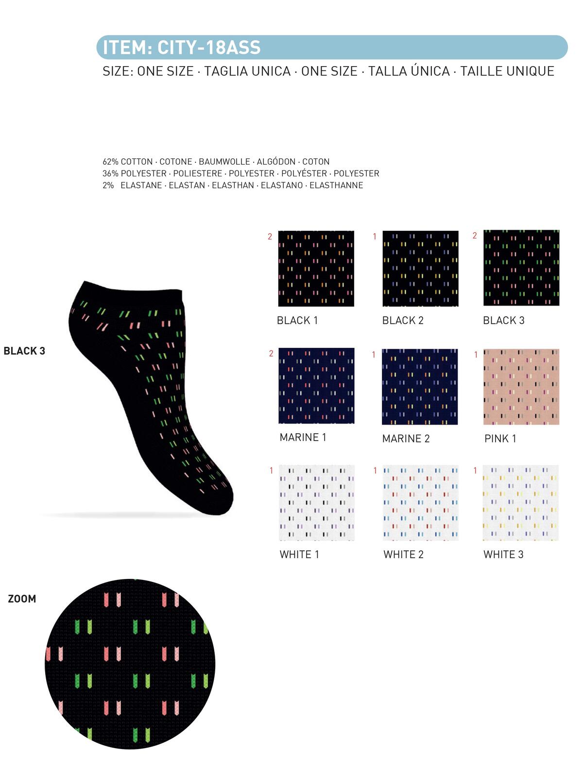 CALZINO CORTO DA DONNA, MODELLO A FANTASIA IN COTONE MERCERIZZATO.