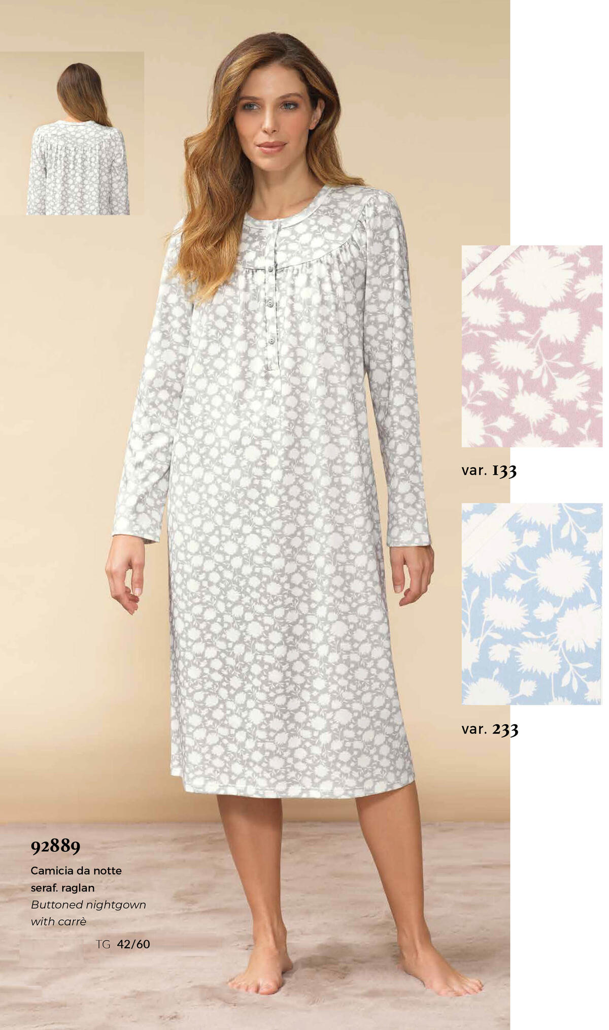 CAMICIA DA NOTTE DONNA, MODELLO SERAFINO IN COTONE INTERLOCK, SERAFINO CON COLLO RAGLAN.