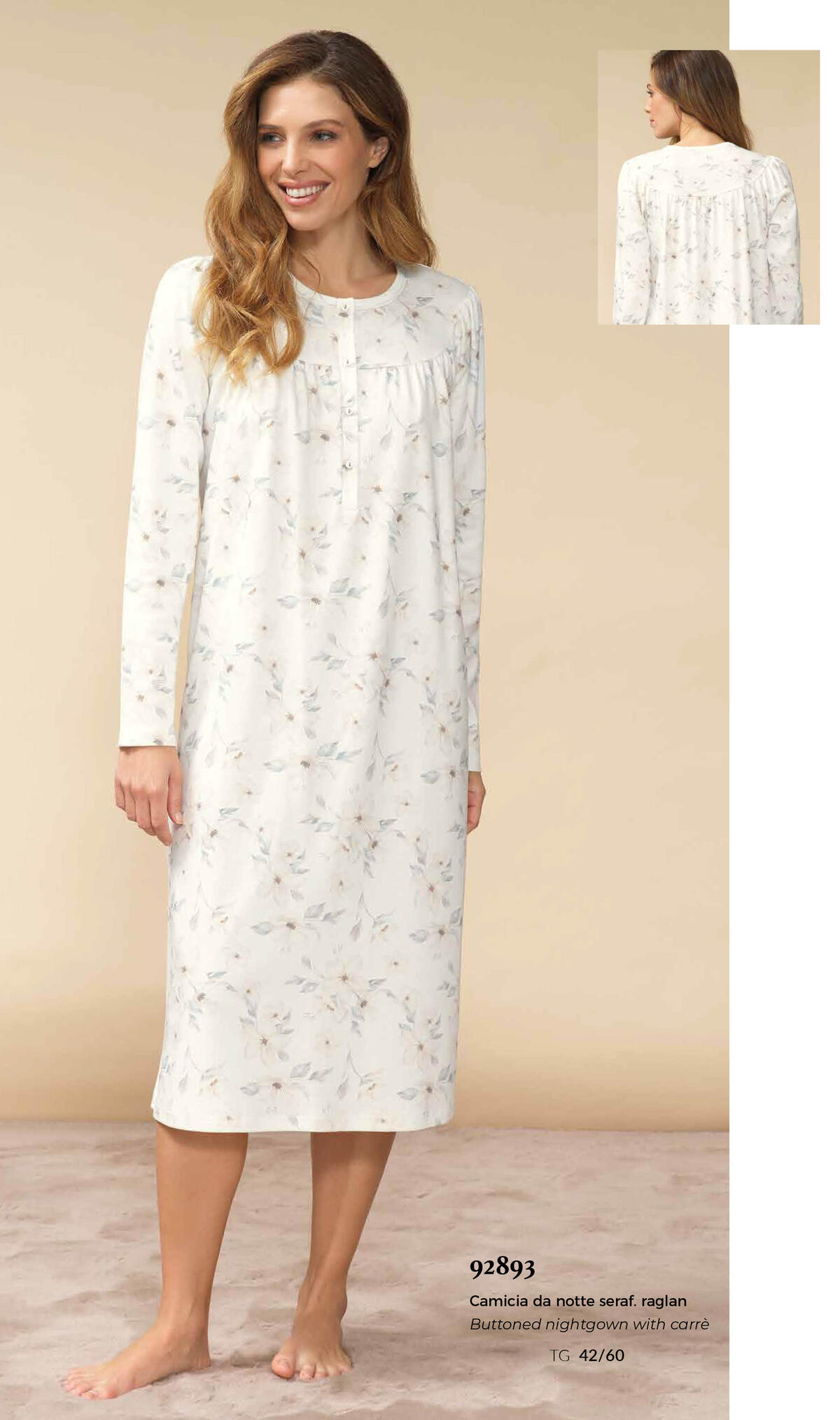 CAMICIA DA NOTTE DONNA, MODELLO SERAFINO IN COTONE INTERLOCK, SERAFINO CON COLLO RAGLAN.