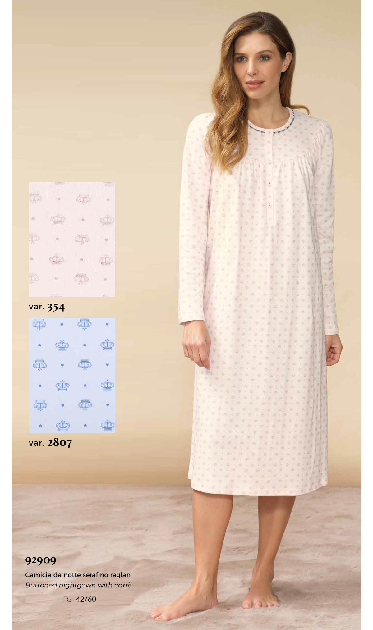 CAMICIA DA NOTTE DONNA, MODELLO SERAFINO IN COTONE INTERLOCK, SERAFINO CON COLLO RAGLAN.