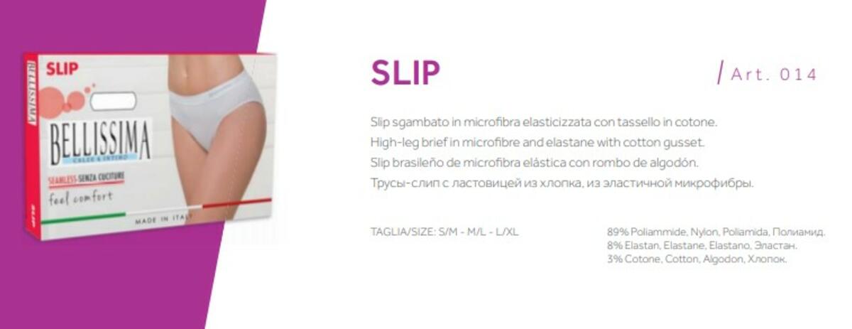 SLIP DONNA SGAMBATO IN MICROFIBRA ELASTICIZZATA CON TASSELLO IN COTONE.